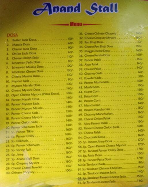 Anand Stall Mumbai Menu - 1, anand stall, anand vada pav, anand stall mumbai maharashtra, anand dosa stall