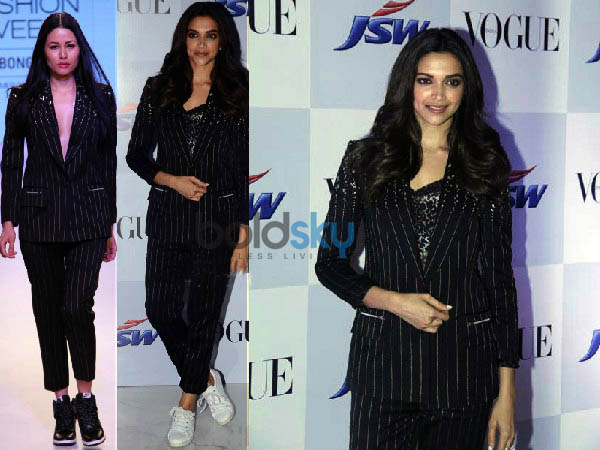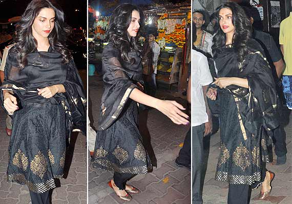 Deepika Padukone Black Suit : Only, malaika was wearing it as a suit, while deepika draped it as a saree.