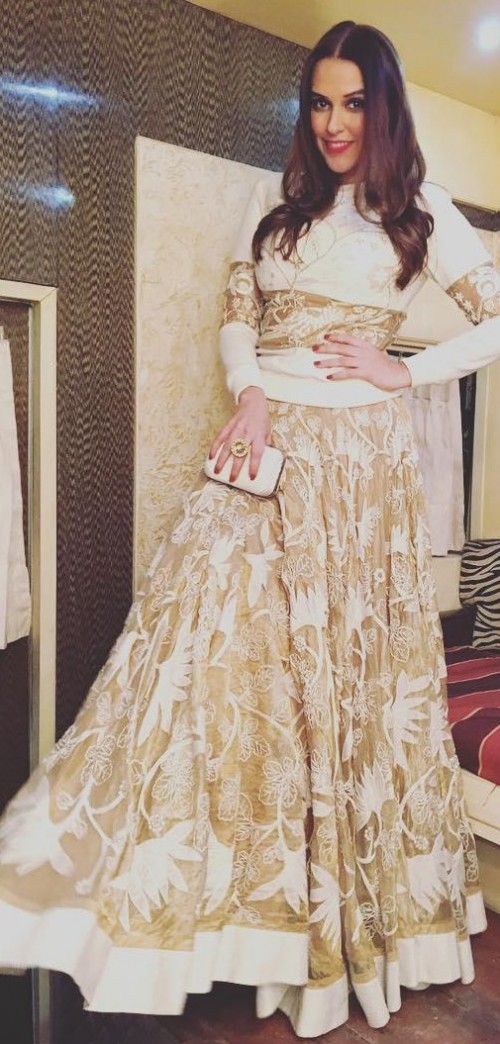 Neha Dhupia Lehenga / Neha dhupia was snapped at the airport today travelling with her hubby angad bedi and their baby daughter mehr dhupia bedi.