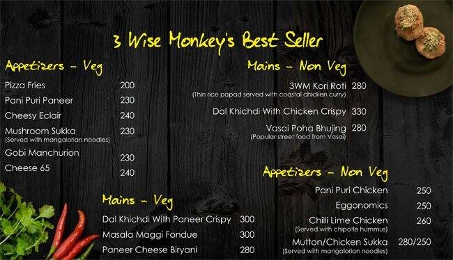 3 Wise Monkeys Vashi Navi Mumbai   Three wise monkeys is rated accordingly in the following categories by tripadvisor travellers: